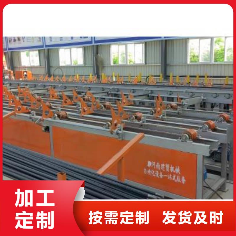 新疆克拉玛依锯切套丝生产线的原料存储架采用大吨位存储,可与棒材自动上料机配合使用,上一个循环尚未结束就可以进行下一步配料,缩短了循环周期。全自动送料辊道,避免原料的二次搬运;钢筋输送、翻转、传递全部由机械完成,大幅度提高了效率;钢筋输送滚采用 V 型耐磨辊,耐磨、噪音低、寿命长.产品特点:1、可自动完成对钢筋端头的自动切断,切头端面平整,可直接套丝。2、钢筋定尺机构采用伺服电机控制,通过伺服电机驱动丝杠机构来调整锯切刀口与定位挡板之间的距离,采用编码器测量,可达±2mm,可锯切各种长度的钢筋。3、对钢筋长度的自动定尺,钢筋长度剪切精准,齐头钢筋尾料短可达到1cm,提高材料的利用率。4、锯切主机生产效率高,可对原料钢筋的两端自动定尺齐头,锯切主机采用双立柱设计,升降平稳,锯切稳定;钢筋压紧采用液压油缸两侧压料,压力大,锯切过程中,钢筋不会转动,减少对锯条的损伤,钢筋切头均匀。5、一级套丝辊道输送平台采用链条式传动,可对齐头后的钢筋临时储料,实现加工作业的流水线作业,减少设备的二次搬运,提高生产效率。6、辊道采用V型轮输送无需人工辅助,保证钢筋自动输送至套丝机,套丝完成后自动翻至下一个工序;V型采用耐磨材料。 7、加强型套丝机,使用寿命长,可实现钢筋的自动夹紧、自动剥肋套丝,降低工人劳动强度,提高生产效率。8、可根据钢筋一端套丝或是两端套丝自动选择套丝流程,也可以根据客户要求(墩粗套丝)用来实现率的生产流程。